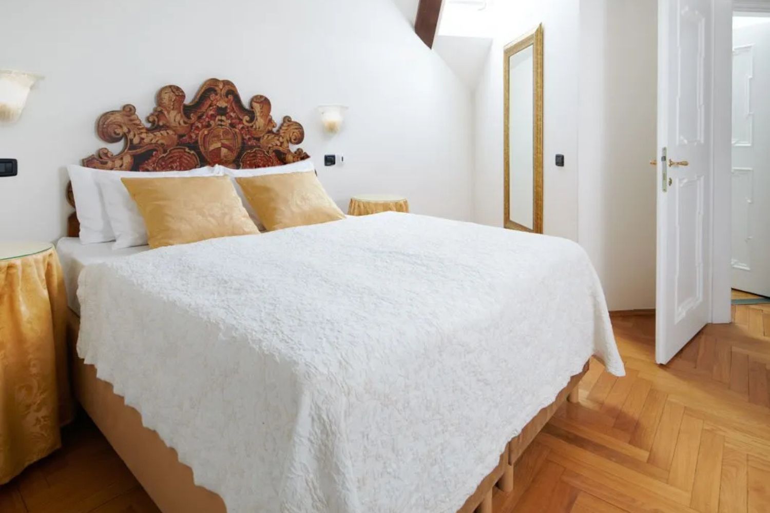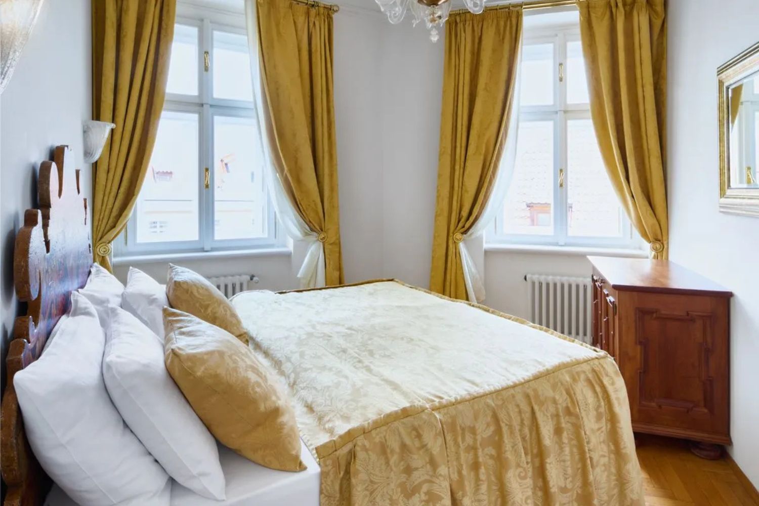 For those who appreciate plenty of space and comfort. Within 30 m², you'll find a cozy living area and a bedroom featuring a stylish bed with a hand-carved headboard. The richly decorated interior evokes the authentic atmosphere of old Prague. Upon request, we’ll be happy to prepare two separate beds instead of a double bed.