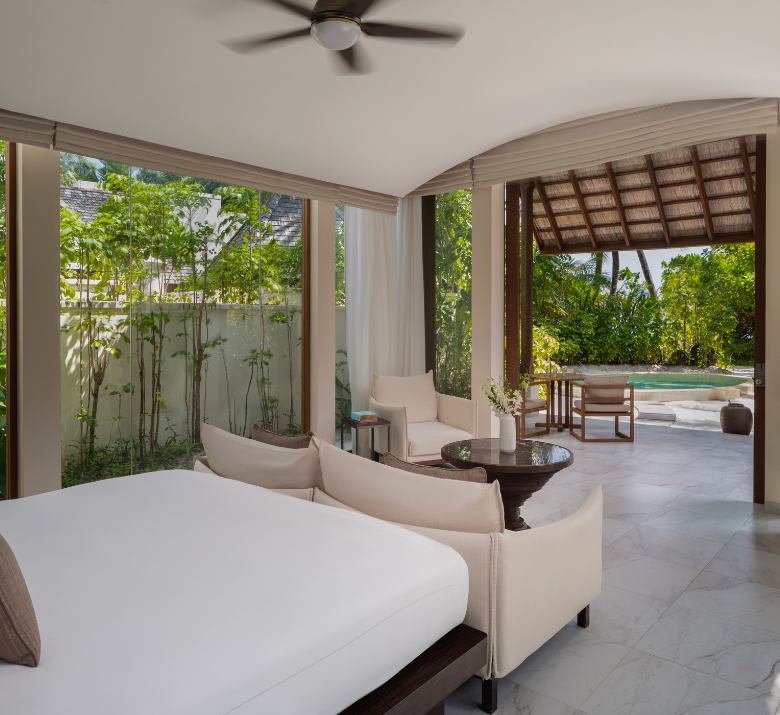 Deluxe Beach Villa offers a private oasis with a plunge pool surrounded by lush gardens, merging comfort with nature. Luxuriate in the sun-drenched bedroom or relax under the stars, tranquility at every turn. The gentle murmur of the sea complements every serene moment.