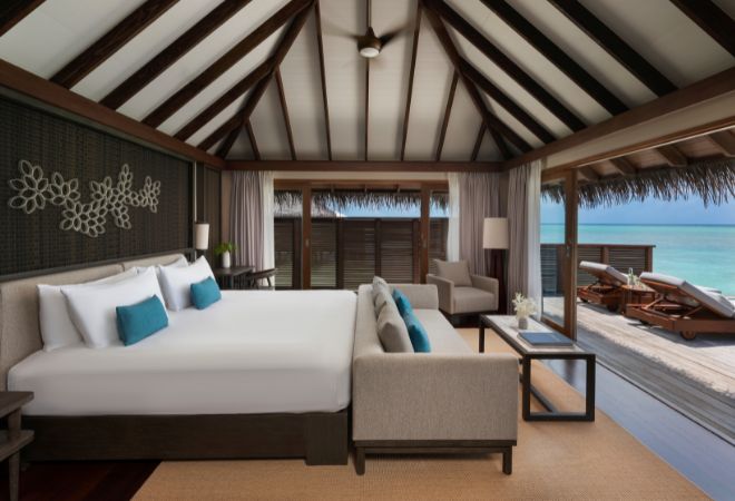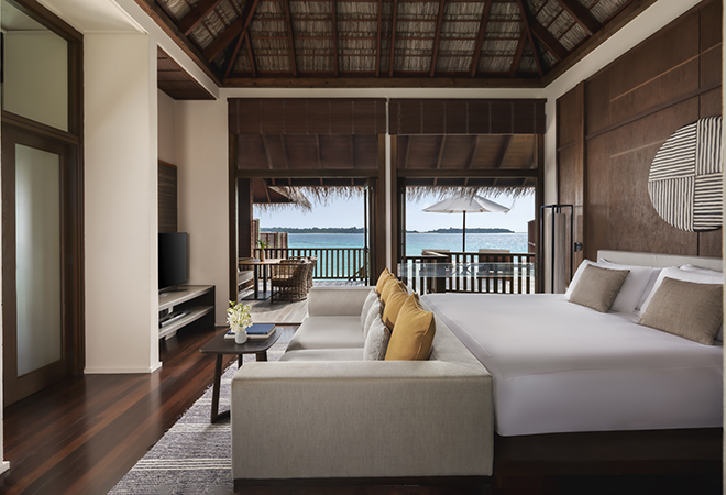 Greet each dawn in our Sunrise Water Villa, where mornings begin with spectacular views from your private whirlpool or sundeck. Designed for intimate escapes, this villa combines luxury with panoramic ocean vistas to create serene, sunlit mornings and unforgettable experiences.
