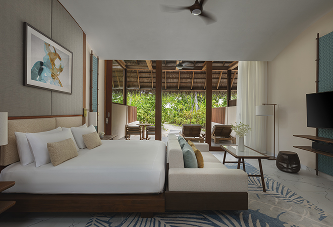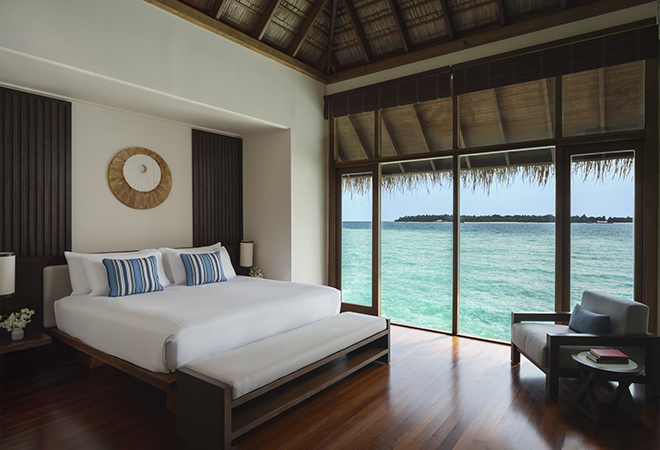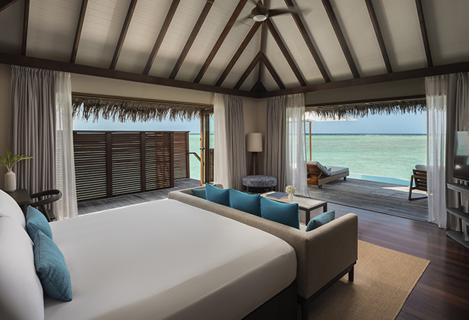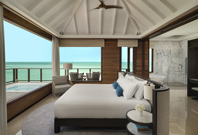 In this villa, elegance surfaces amidst the vast ocean, offering a private pool and seamless sea entry. Luxury is reflected in every detail, from the sunken ocean-view tub to the tranquil outdoor spaces. Surrender to the rhythmic sway of the ocean in this secluded paradise.