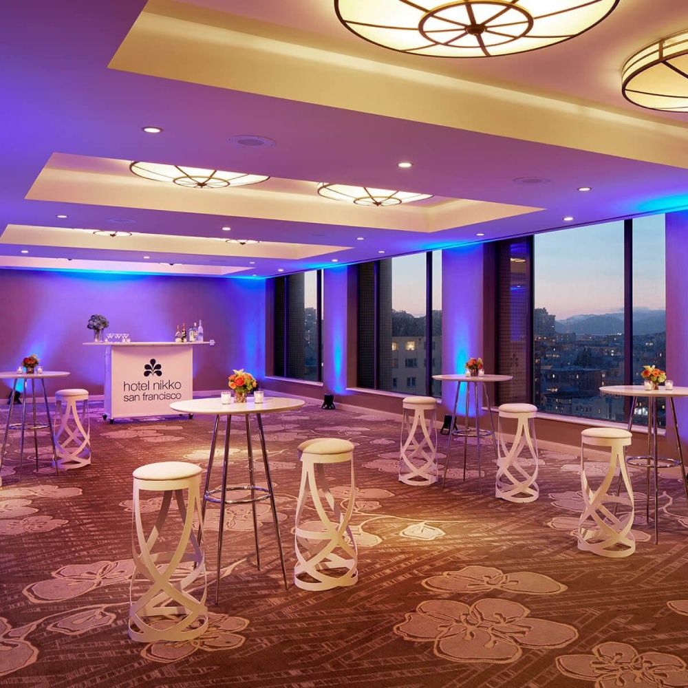 Stay luxuriously in a corner suite with impressive San Francisco city views from the 20th and 21st floors of Hotel Nikko. Indulge in high-rise elegance surrounded by the cityscape. Lounge in the parlor with a plush sofa, chair, and coffee table, or unwind in the private king bedroom.
