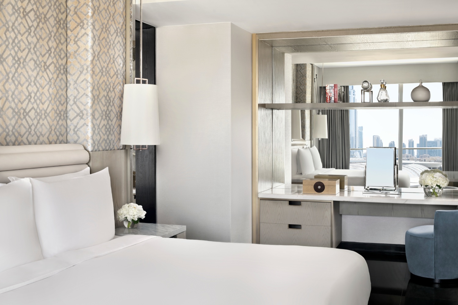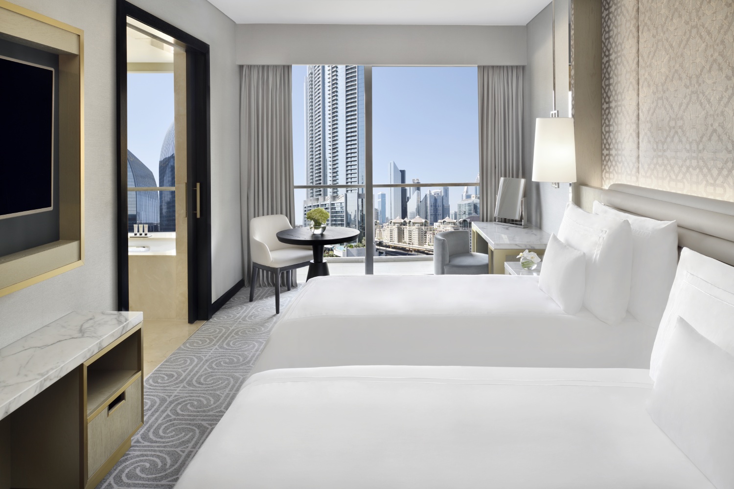 Located on floor 15, the Grand Suite unfolds like a poetic dreamscape, offering three bedrooms and two living areas. Private balconies provide breathtaking iconic Burj Khalifa vistas, whilst the expansive bathroom whispers luxury. Enjoy an inclusive breakfast and late check-out at up to 4:00pm. Exclusive Club Lounge access and automated in-room TVservice will enhance your stay. As an added benefit, every booking includes complimentary access to House of Hype in Dubai Mall, exclusively offered in partnership with Rayna Tours.