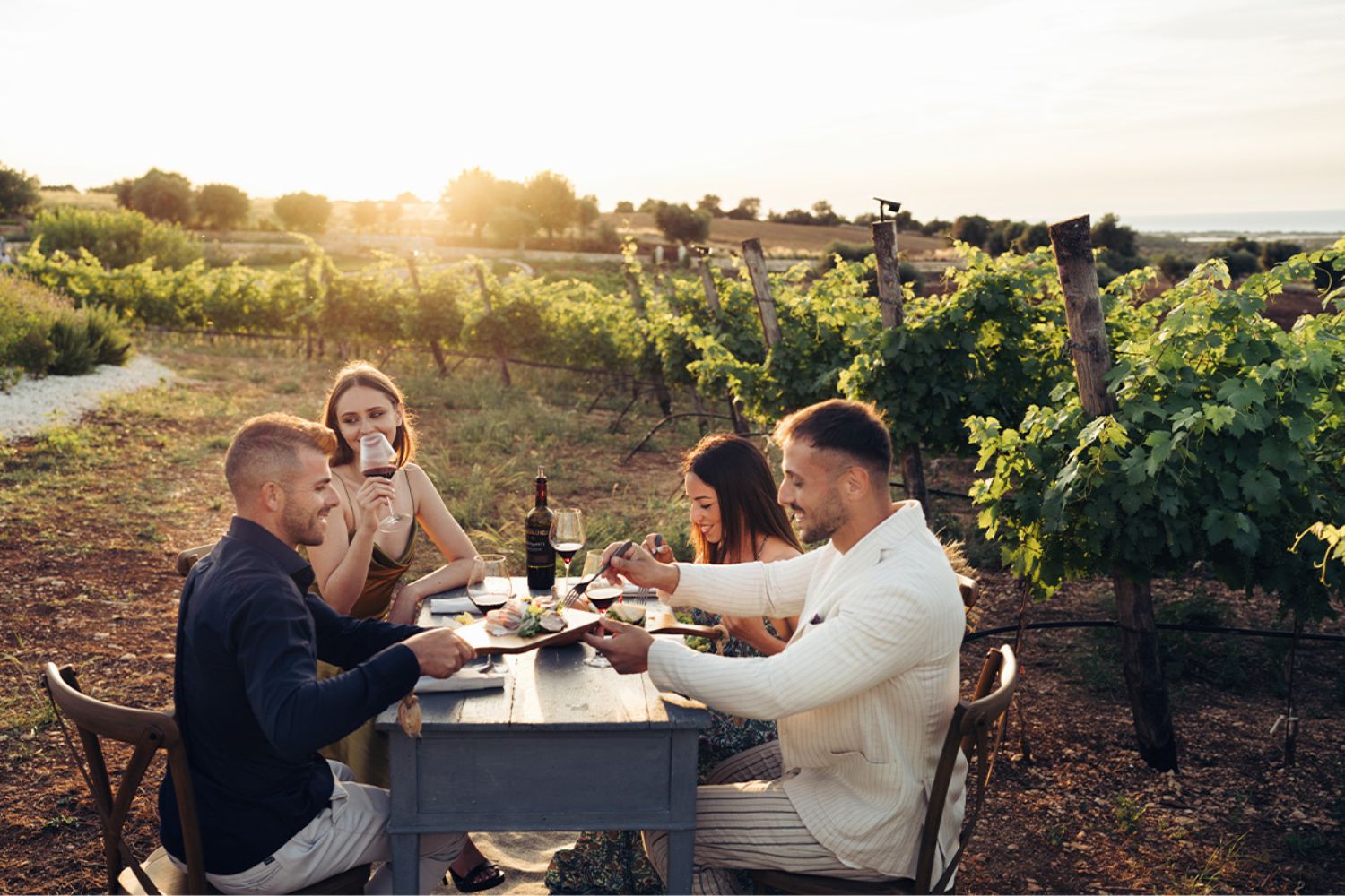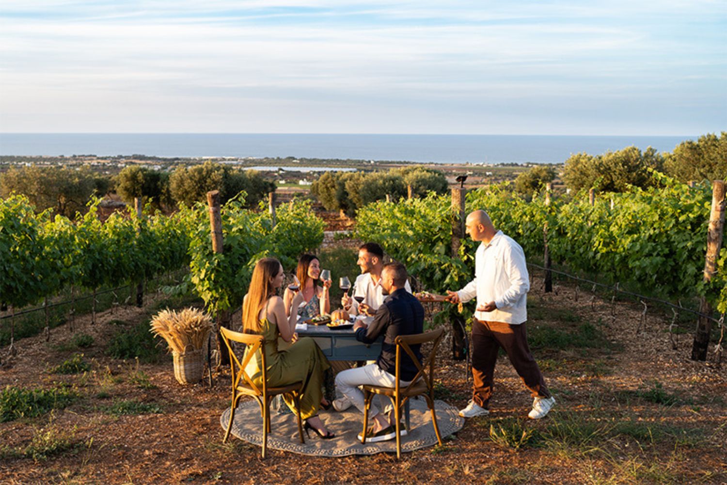 The tastefully decorated rooms feature unique details: a small balcony with views of the sea and vineyard; direct access to the bar with a panoramic terrace; and an original stone bed.