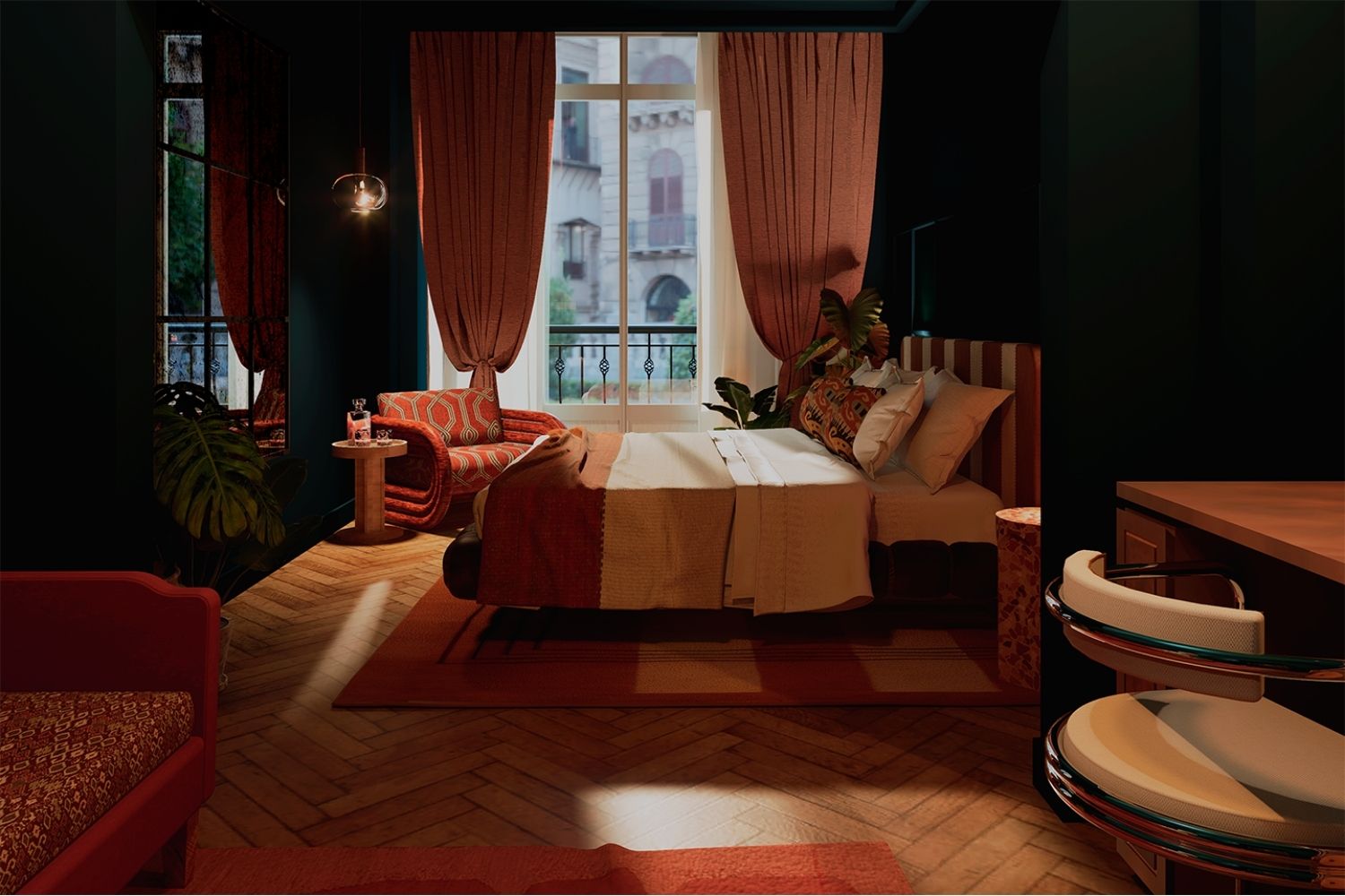 Pay tribute to the splendor of bygone eras in the exclusive Penthouse. Spread over two floors, it offers unparalleled panoramic views that fill the interior with natural light, a spacious bathroom with a bathtub and double sinks, and an outdoor terrace with a private plunge pool.