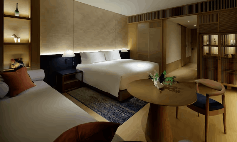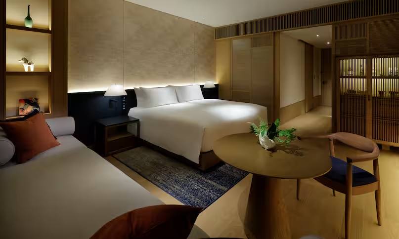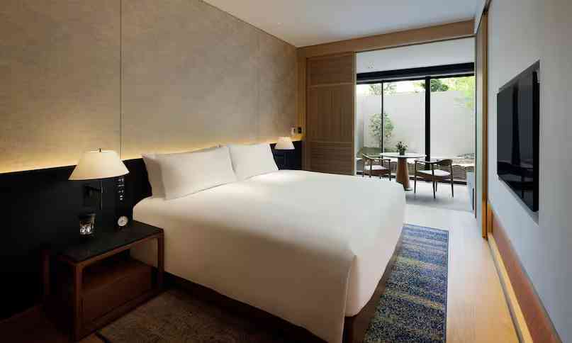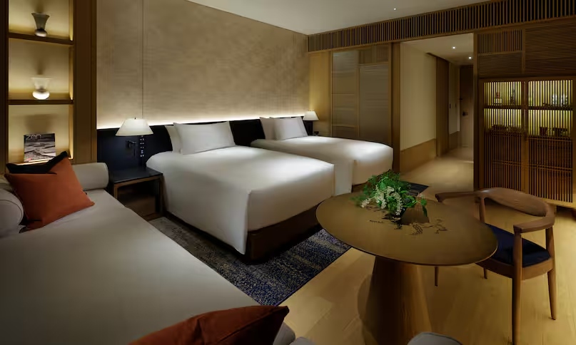 Poolside Deluxe rooms, comprised of a square meters room and 33 square meters private terrace space, offer a complete resort experience. Guests in all four Poolside Deluxe rooms have direct access to THE ROKU SPA's thermal pool, and enjoy convenient access to the spa and fitness rooms. Sleeps 3 (fees apply).