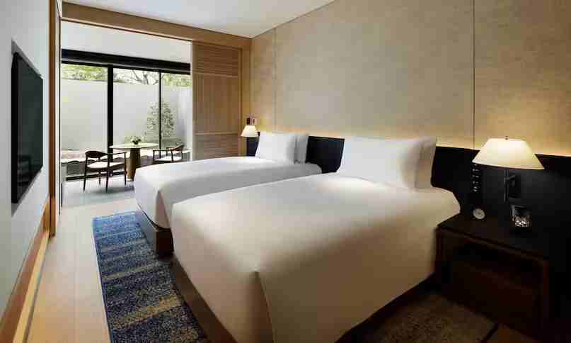 Garden Deluxe rooms are comprised of a 50 square meters with 17 square meters private garden. Guests can enjoy a view of their private garden from their bath, which draws its water from a natural hot spring. Sleeps 2.
