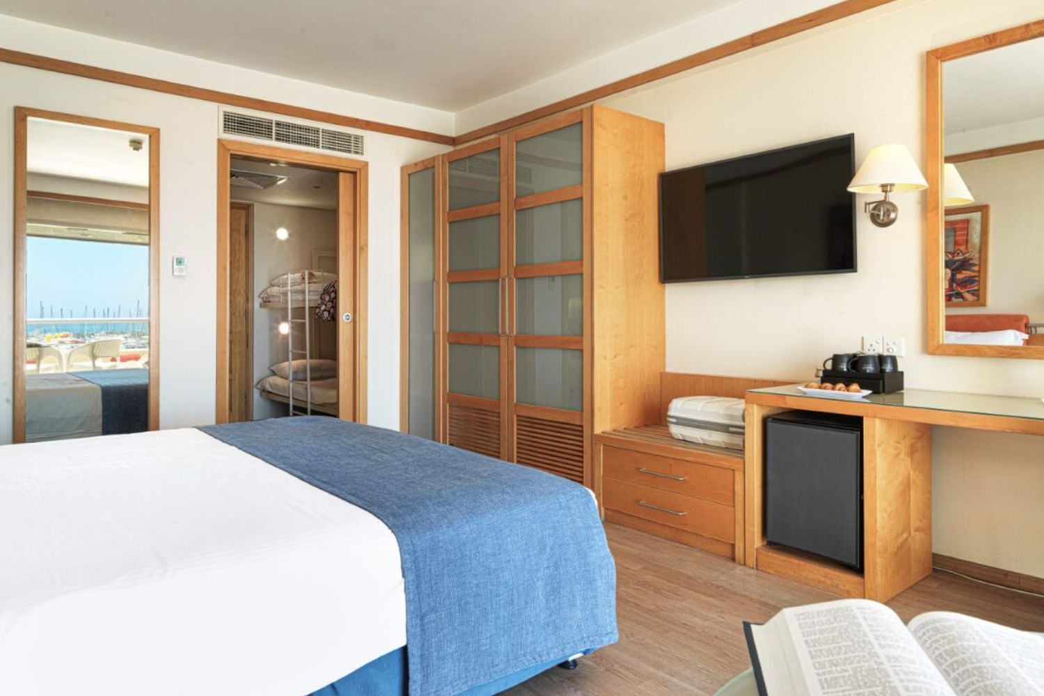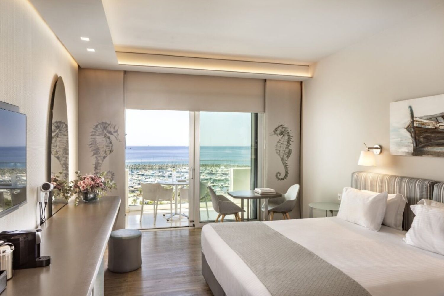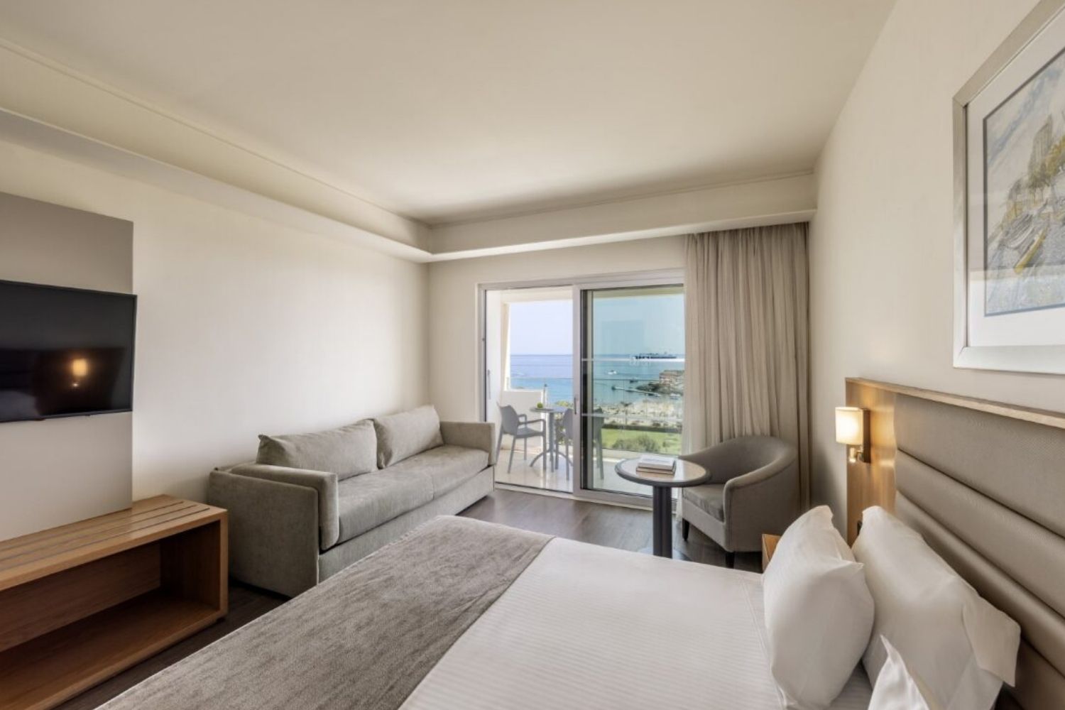 Enjoy our spacious, bright, and airy Sea View Rooms, where you can take in spectacular views of the Mediterranean Sea from your private furnished balcony. Featuring Mediterranean décor, each spacious 27-square-metre room offers both comfortable twin and queen-size beds.