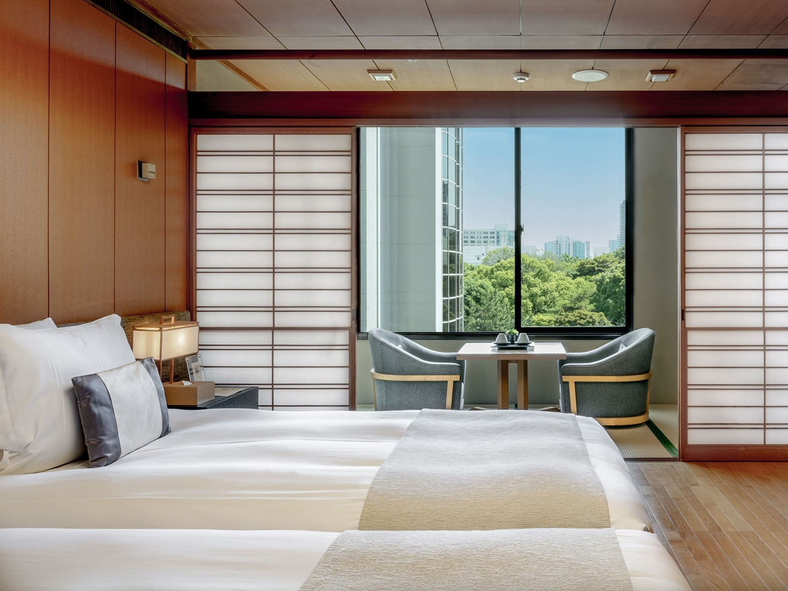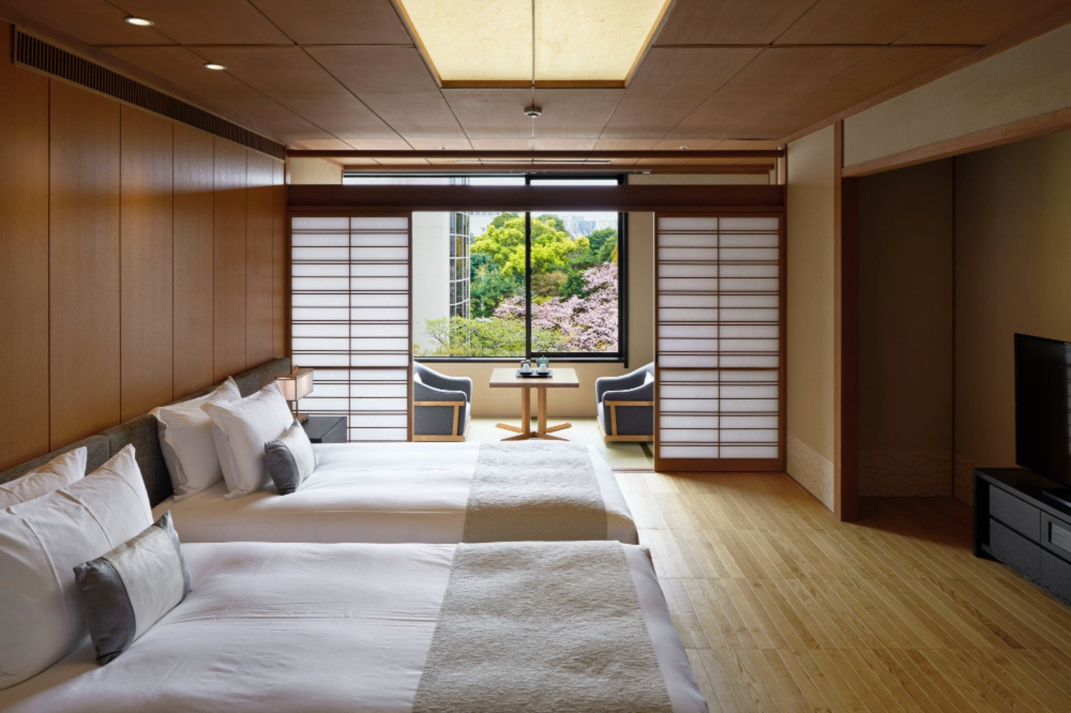 A room with a full window view of the Japanese Garden that changes its appearance with the seasons. Enjoy the beauty of nature throughout the year.