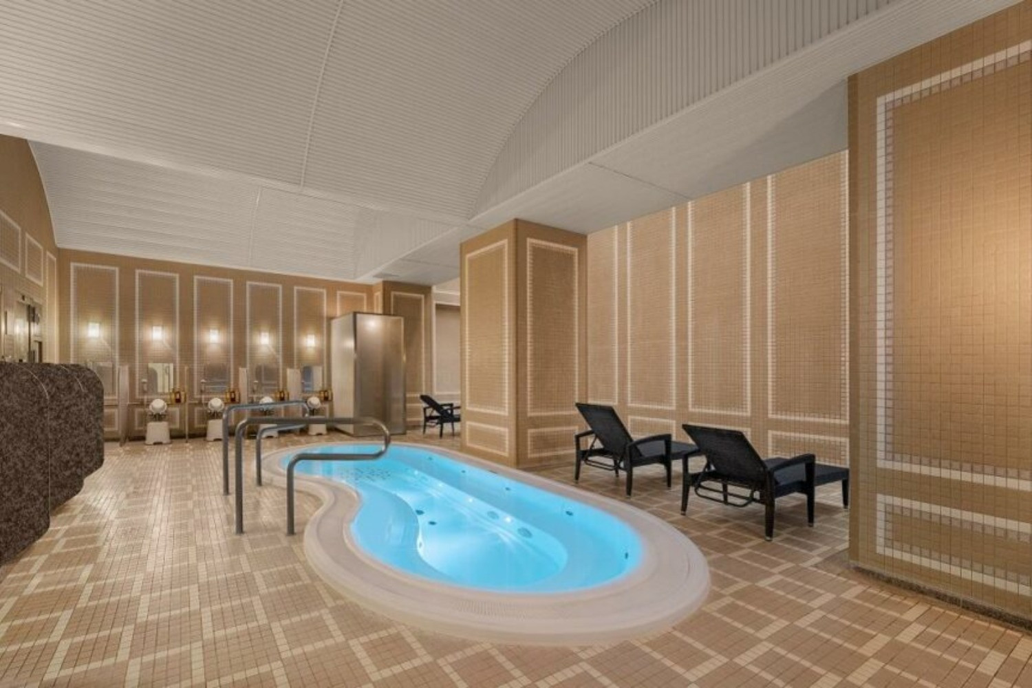 Soft light spreads through the shoji . In this traditional Japanese space, the scent and warmth of tatami create a soothing atmosphere. The bathtubs at HANAKOHRO Suite are made of hinoki (cypress) and Towada stone.