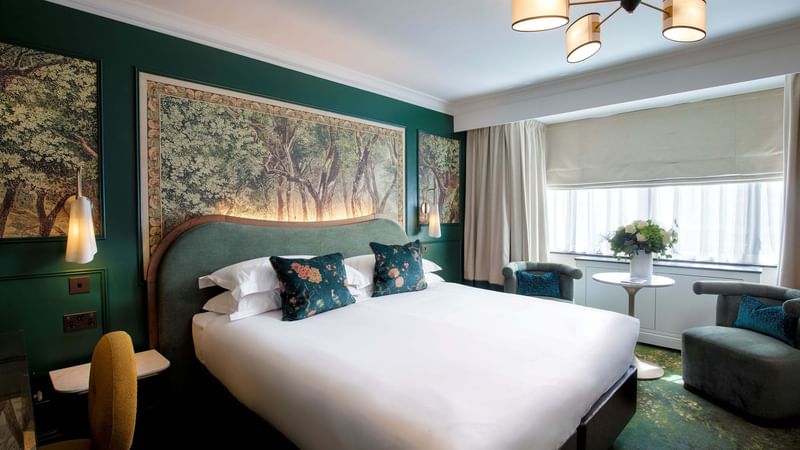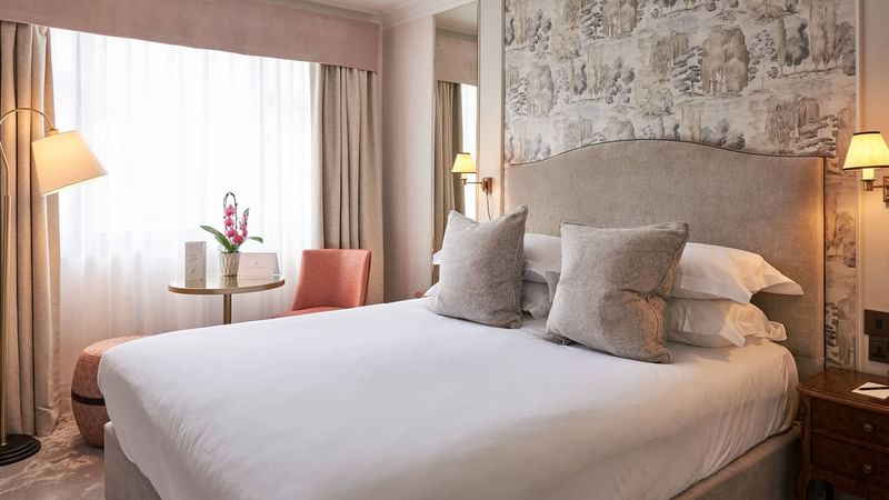 Classic King / Twin features tasteful neutral colour schemes and rich furnishings to provide a restful atmosphere amid the bustle of Knightsbridge. With 23 sqm of space, these rooms are perfect for up to two adults. They include King beds that can be twinned as well as interconnecting rooms available upon request, located in the main hotel and our modern annex.