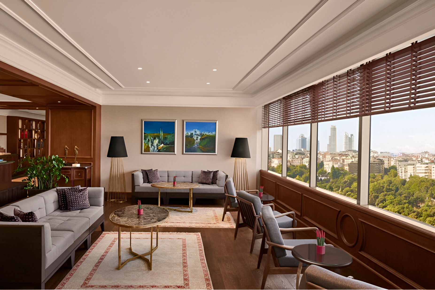 The 366 sqft Twin Park View Room features two twin beds, a mini fridge, living area, and coffee/tea maker. The marble bathroom includes a separate bathtub and shower, hair dryer, robes, and slippers. It accommodates up to 3 guests, offers luxury bedding, air conditioning, soundproof windows, and mobility-accessible options. Guests can enjoy cable/satellite entertainment, pay-per-view movies, and international channels. Ideal for travelers seeking comfort, convenience, and a stylish stay with park views.