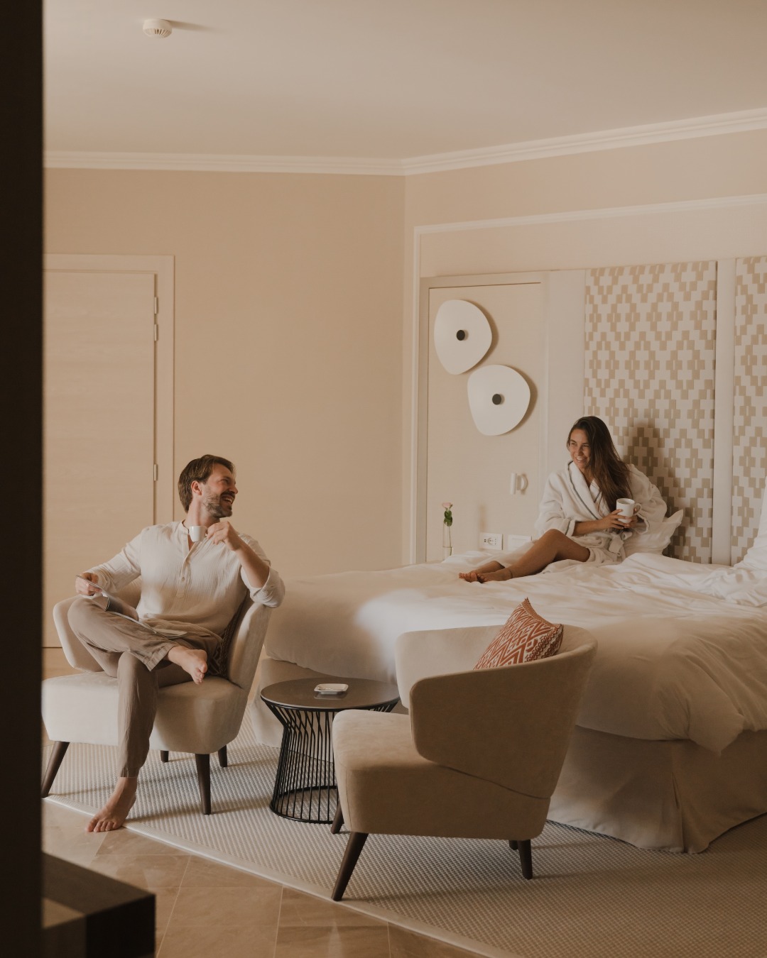 Con sus espacios amplios y luminosos, la Prestige Suite Bay Side ofrece una estancia caracterizada por un confort exclusivo y un auténtico ambiente mediterráneo.