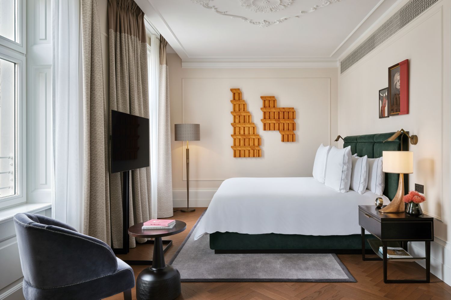 Situada en la esquina del histórico edificio Rosewood Vienna, la Junior Suite Ejecutiva goza de lujosas proporciones y hermosas vistas a una de las plazas más famosas de Viena: Graben. Los amplios espacios para sentarse y entretenerse son ideales para viajeros de negocios, familias o cualquiera que busque un alojamiento de estilo residencial en Viena. El mobiliario, la iluminación y los tejidos a medida realzan el carácter distintivo de estas lujosas suites. (53-61 metros cuadrados)